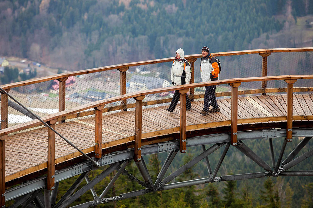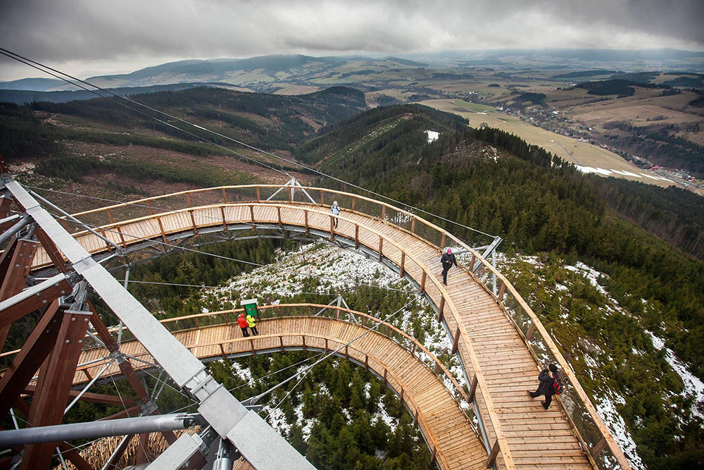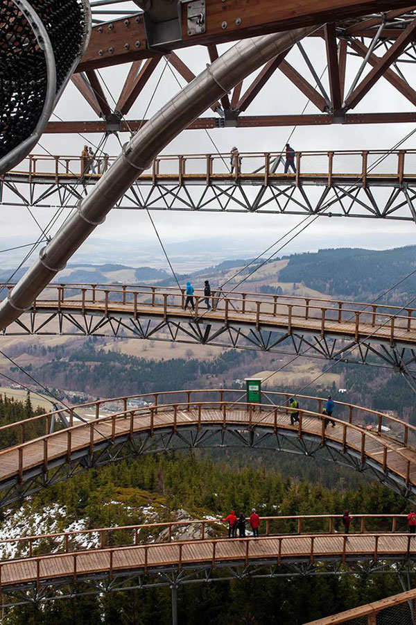 Sky Walk, czyli spacer w chmurach, który możliwy jest w Resorcie Dolni Morava to wyjątkowe przeżycie dla każdego. Wieża o wysokości 55 metrów znajduje się na zboczu góry Slamnik na wysokości 1116 m n.p.m. Poprzez swoje położenie gwarantuje doskonałe widoki na cały Masyw Śnieżnika z malowniczą doliną rzeki Morawy. W oddali rysują się grzbiety Jeseników, Suchy Vrch i Karkonosze.