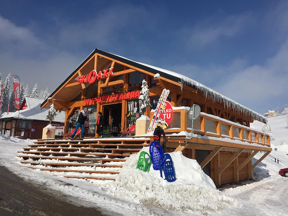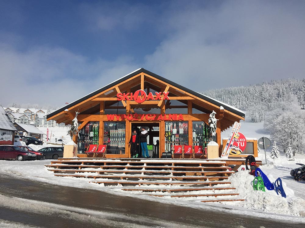 Zapraszamy do rodzinnej wypożyczalni SKI MAXX która mieści się 20m powyżej skrzyżowania wjazdu na apartamenty przy parkingu głównym ośrodka “Czarna Góra” w Siennej.