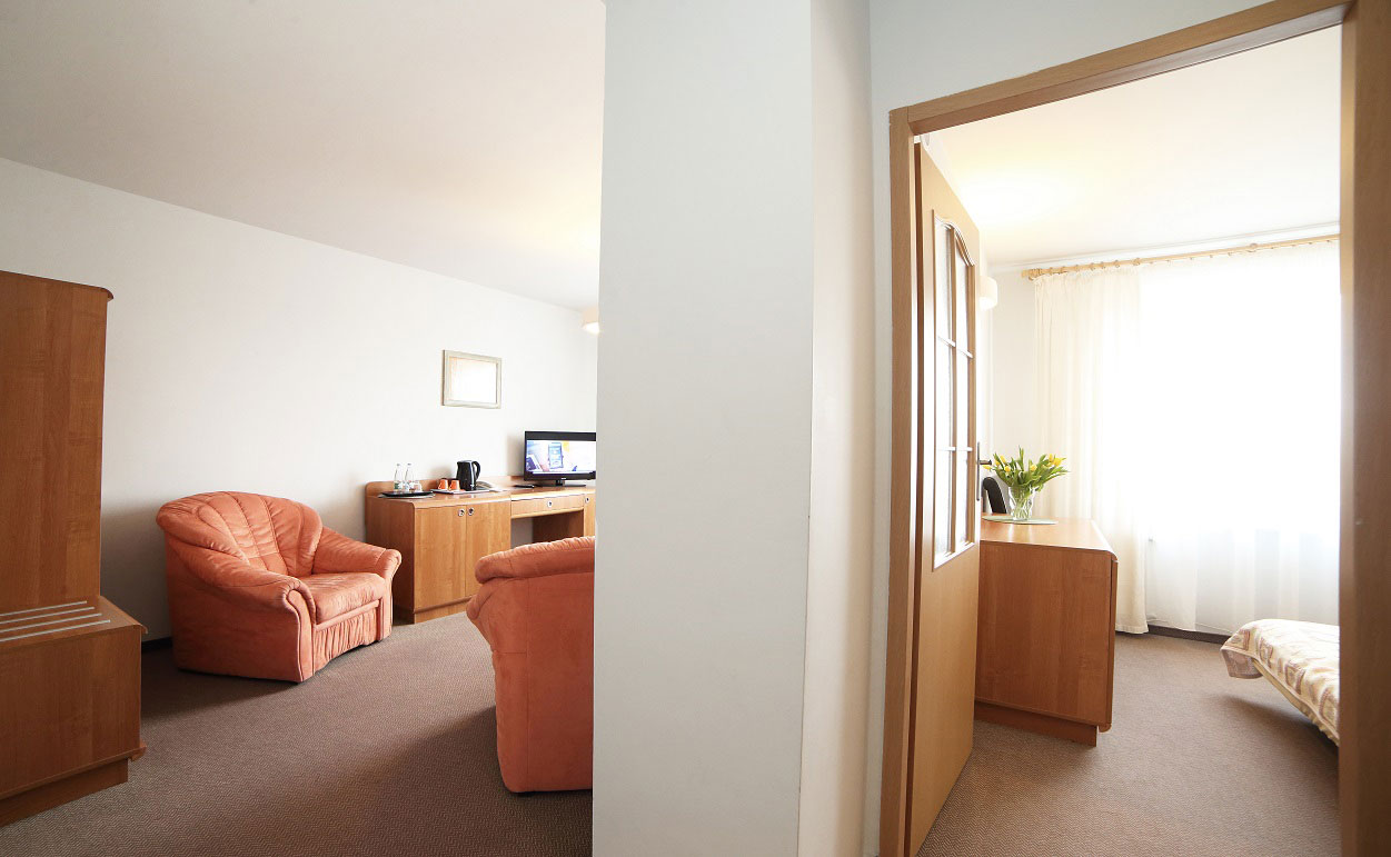 W obiekcie znajdują się 83 miejsca w pokojach 2 osobowych i apartamentach – wszystkie z łazienką, TV, telefonem, bezpłatnym łączem internetowym. Część pokoi przystosowana dla osób niepełnosprawnych.