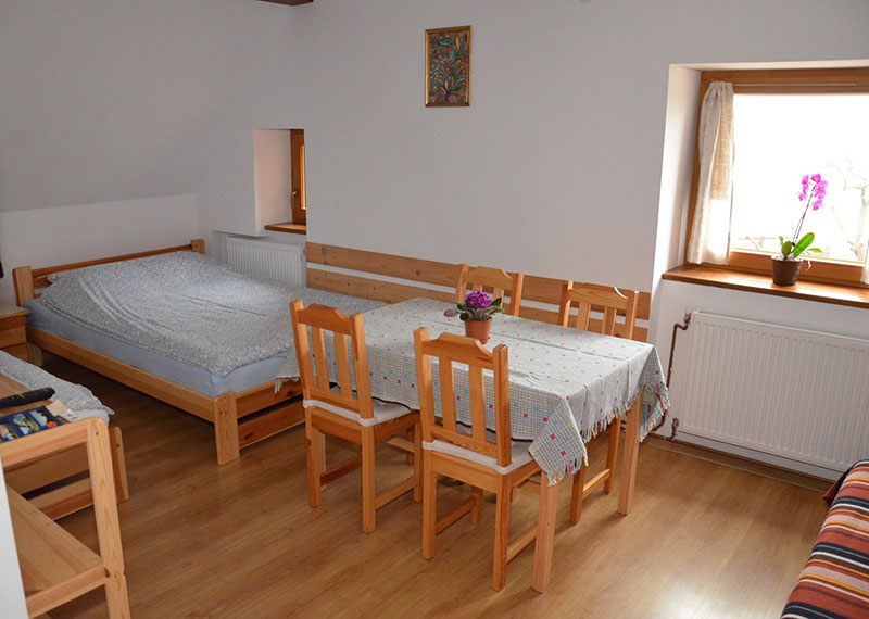 Dla gości przygotowano pokoje 2, 3, 4 i 5 osobowe z TV, łazienkami i WC. Wyposażone są w łóżka sosnowe z wygodnymi materacami i wersalkami, które sprzyjają dobremu odpoczynkowi. Do dyspozycji gości na piętrze jest aneks kuchenny wyposażony w przypisane do pokoju szafki, lodówkę, mikrofalówkę, czajnik bezprzewodowy, kawiarkę. Na parterze znajduje się ogólnodostępna kuchnia, a w holu kominek. W budynku jest dostęp do bezprzewodowego internetu Wi-Fi. W sadzie znajduje się altanka z grillem, miejsce na ognisko oraz bezpośrednie zejście do potoku. Do dyspozycji gości jest biblioteka. Można także wypożyczyć rowery górskie.