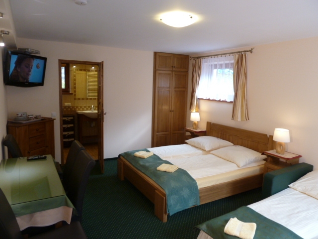 Oferujemy Państwu 30 miejsc noclegowych w pokojach 2, 3, i 4 osobowych oraz apartamencie wyposażonych w pełny węzeł sanitarny (łazienka z prysznicem, umywalką i WC), telewizor LCD " z TV-sat, spełniających standardy wymagane w branży hotelarskiej. Do dyspozycji Gości jest wyposażony aneks kuchenny.