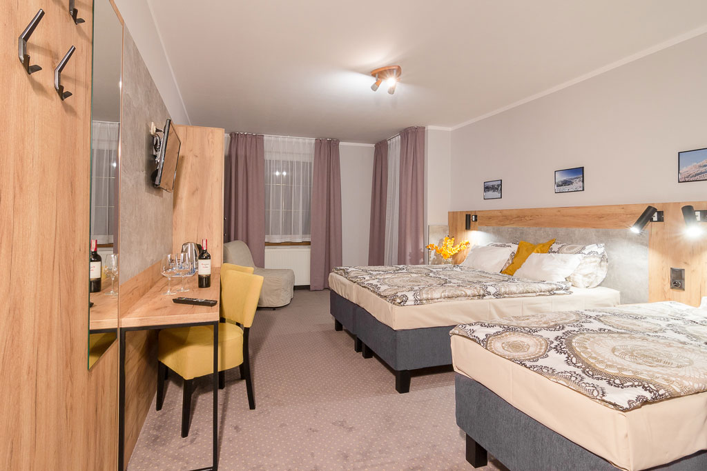 Oferujemy Państwu 43 miejsca noclegowe w pokojach 2- i 3-osobowych z łazienkami oraz balkonami z przepięknym widokiem na szczyt Czarnej Góry.