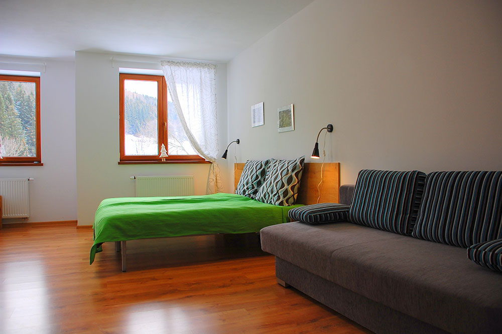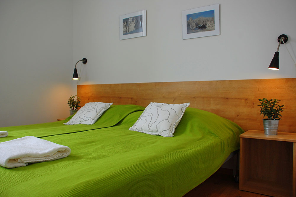 Dla rodzin z dziećmi polecamy dwa duże pokoje, nawet dla 5-osobwej rodziny (w pokoju łóżko małżeńskie dzielone, rozkładana kanapa i dostawka 90×200 cm). Wszystkie dzieci do lat 3 śpią u nas za darmo i po wcześniejszym umówieniu otrzymują łóżeczko turystyczne z kompletem pościeli.