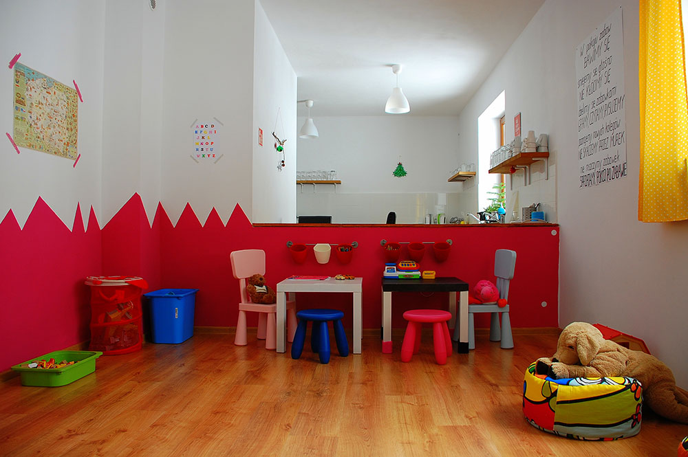 Na naszych najmłodszych Gości czeka przestronny pokój zabaw z klockami, puzzlami, kredkami, grami planszowymi. Pokój zabaw znajduje się bezpośredni przy kuchni i oddzielony jest od kuchni niewysokim murkiem. W czasie kiedy rodzice szykują posiłek w kuchni, dzieci mogą spokojnie bawić się tuż obok pod czujnym okiem Mamy lub Taty.