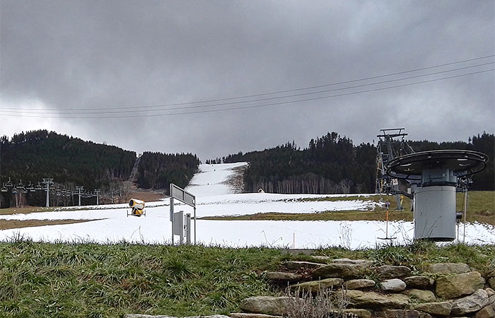 Sytuacja zbytnio się nie zmieniła od zeszłego tygodnia. Symboliczne opady śniegu nie poprawiły stanu stoków narciarskich ani tras biegowych. Działają tylko sztucznie…